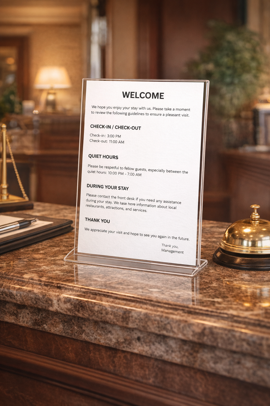 Designed to communicate expectations gently and clearly, without visual noise or harsh language.